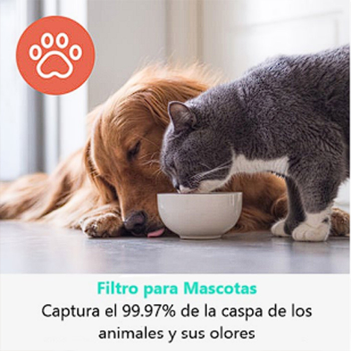 de las mascotas y las proteínas Fel-d 1 tan pequeñas como 0.3 micrones. La luz UV-C reduce el