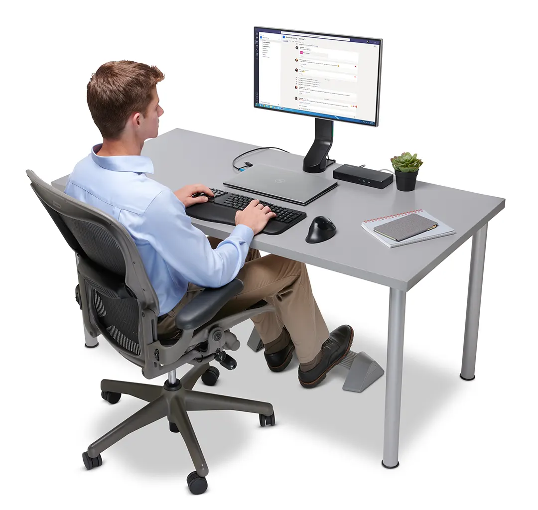 Con su soporte cómodo y estable, su límite de peso de 136 kg y su barra giratoria de 360 ??grados, el apoya piés mecedor ofrece ergonomía y promueve el movimiento y el estiramiento mientras está sentado o de pie.