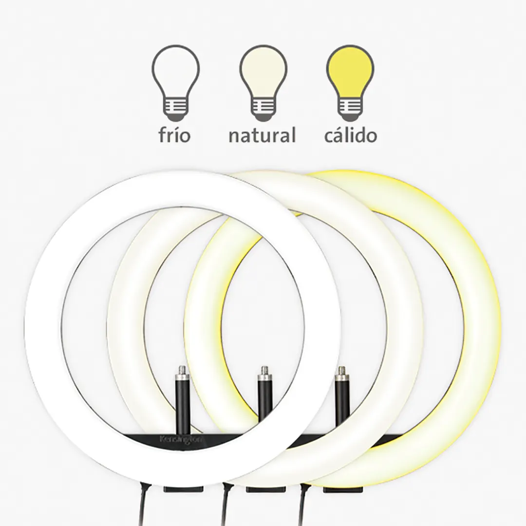 El aro de luz bicolor L1000 con soporte para webcam es una solución de iluminación económica que cuenta con muchas funciones para mejorar rápidamente la visualización de las videoconferencias. El aro de luz proporciona el brillo óptimo para los entornos de oficina, y tiene la capacidad de poder colocar la webcam en el centro del aro para garantizar una distribución de la luz consistente.