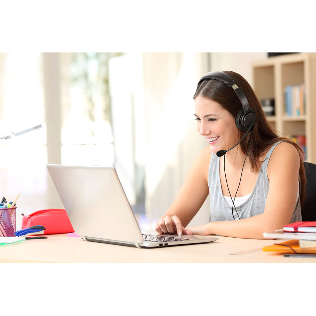 • Monitoreo de un solo lado habilitado: los auriculares giran para permitir que los maestros o instructores del centro de llamadas escuchen y brinden soporte