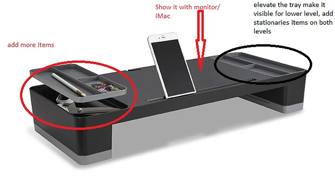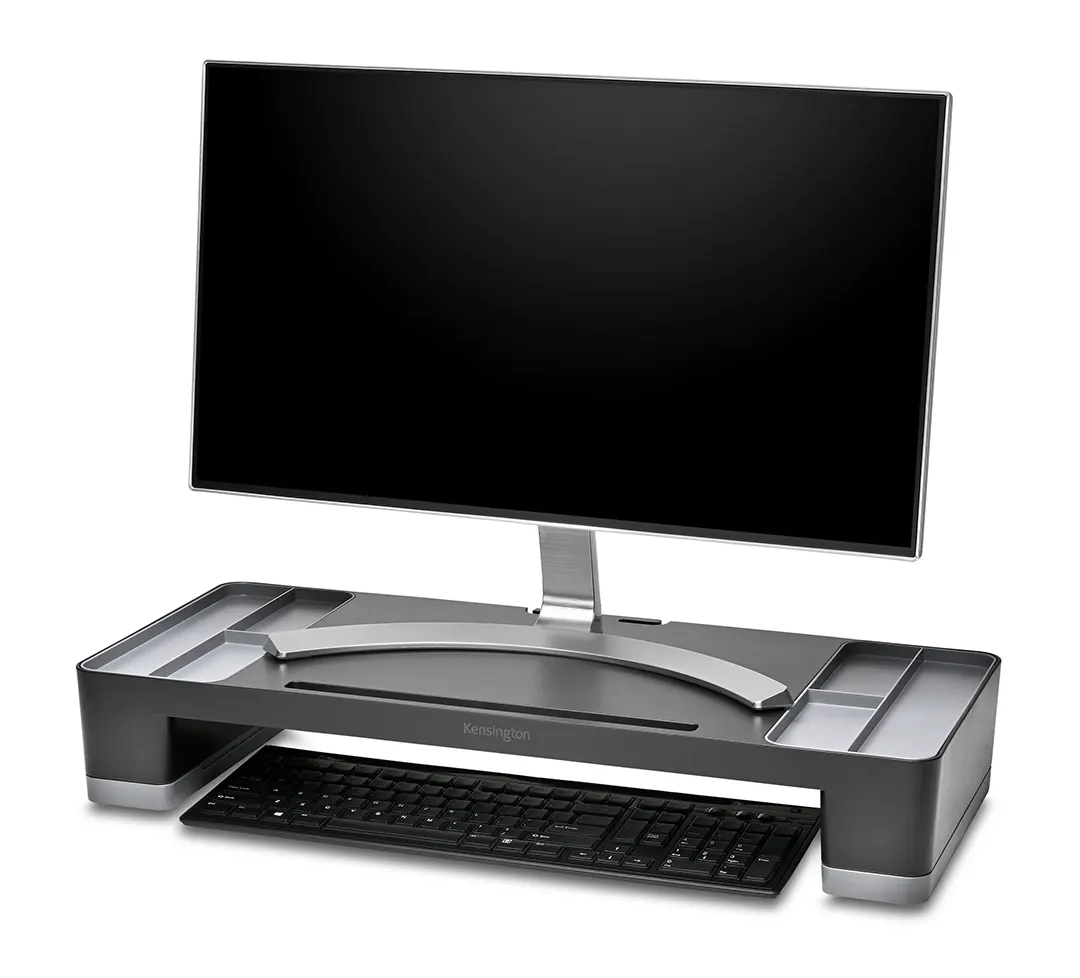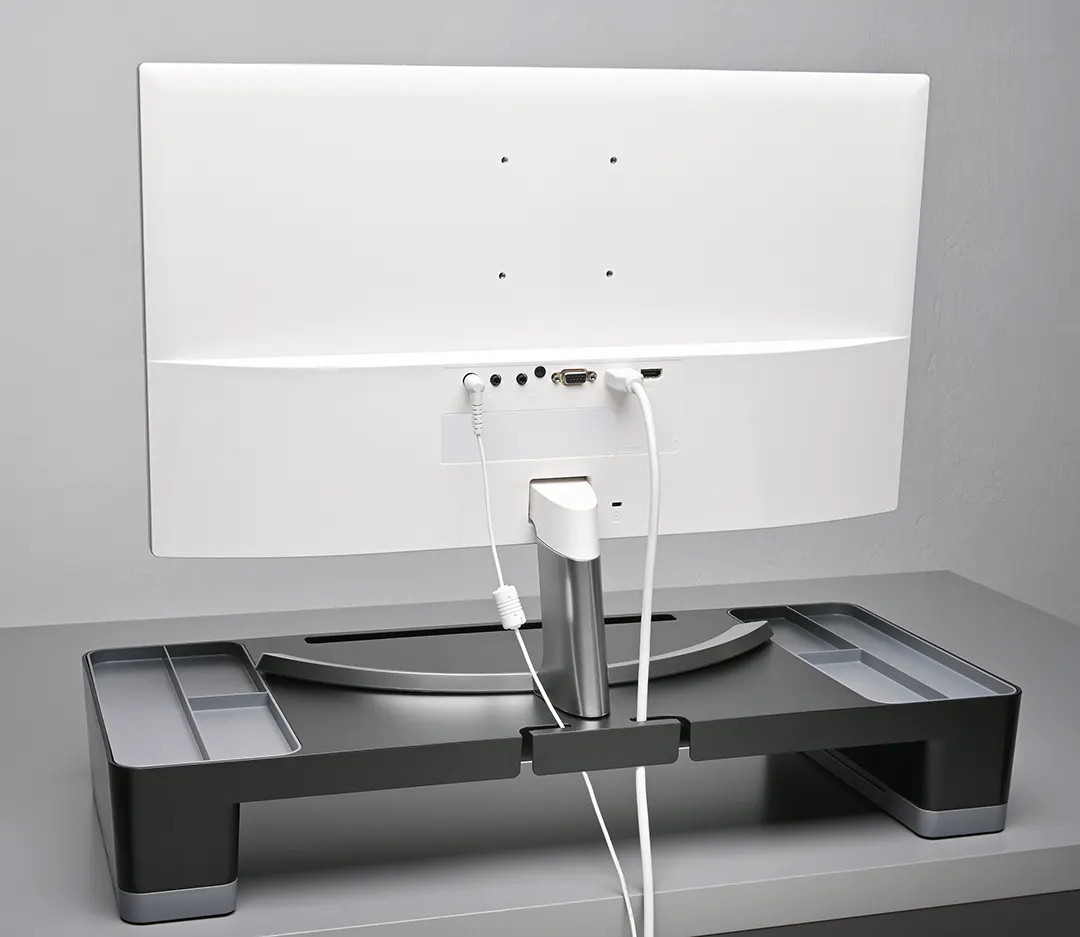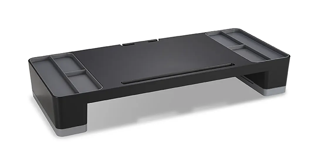Con su altura ajustable y almacenamiento incorporado, el soporte organizador para monitor eleva su nivel de comodidad y organización, nada más sacarlo de la caja. El diseño minimalista ayuda a mejorar la postura y promover la comodidad del cuello y los ojos. Tiene capacidad para monitores de hasta 18 kilos y guarda un teclado de tamaño completo debajo, mientras que los cubículos a cada lado brindan un amplio espacio de almacenamiento para los suministros de oficina cotidianos. 62 ancho x 26 profundidad x 8-10 cms alto