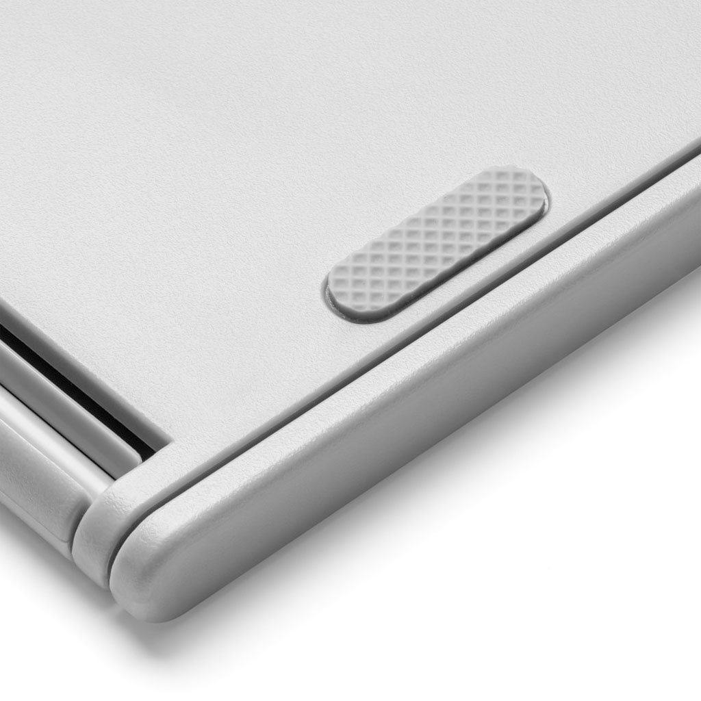 • Portabilidad inteligente: Cuenta con una base que ahorra espacio y se adapta a varios tamaños de escritorio, una estructura plegable delgada y plana ideal para viajes, un mango integrado para transportarlo fácilmente y bordes resistentes que brindan protección extra.