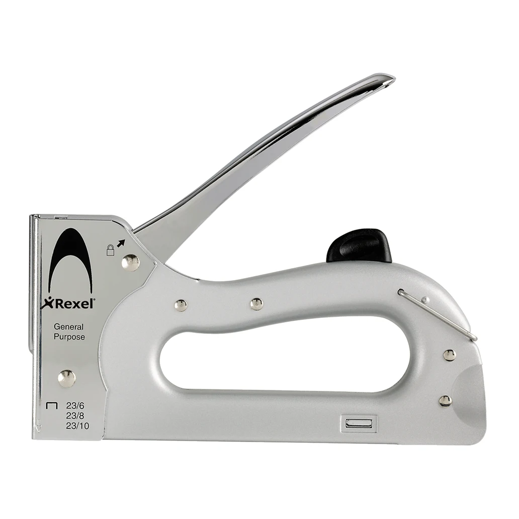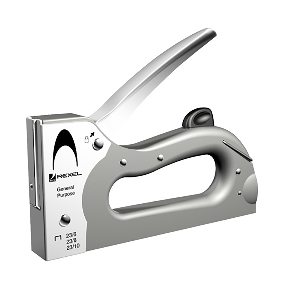 Cuando se trata de tapicería, fijación de papeles, telas, las nuevas Clavadoras Rexel® son fáciles de manejar y es recargable.Altamente seguras por su sistema de bloqueo y poseen una gran precisión de remate en los objetivos que se buscan. Utiliza Corchete : Rexel® 23/6mm, 23/8mm y 23/10mm.