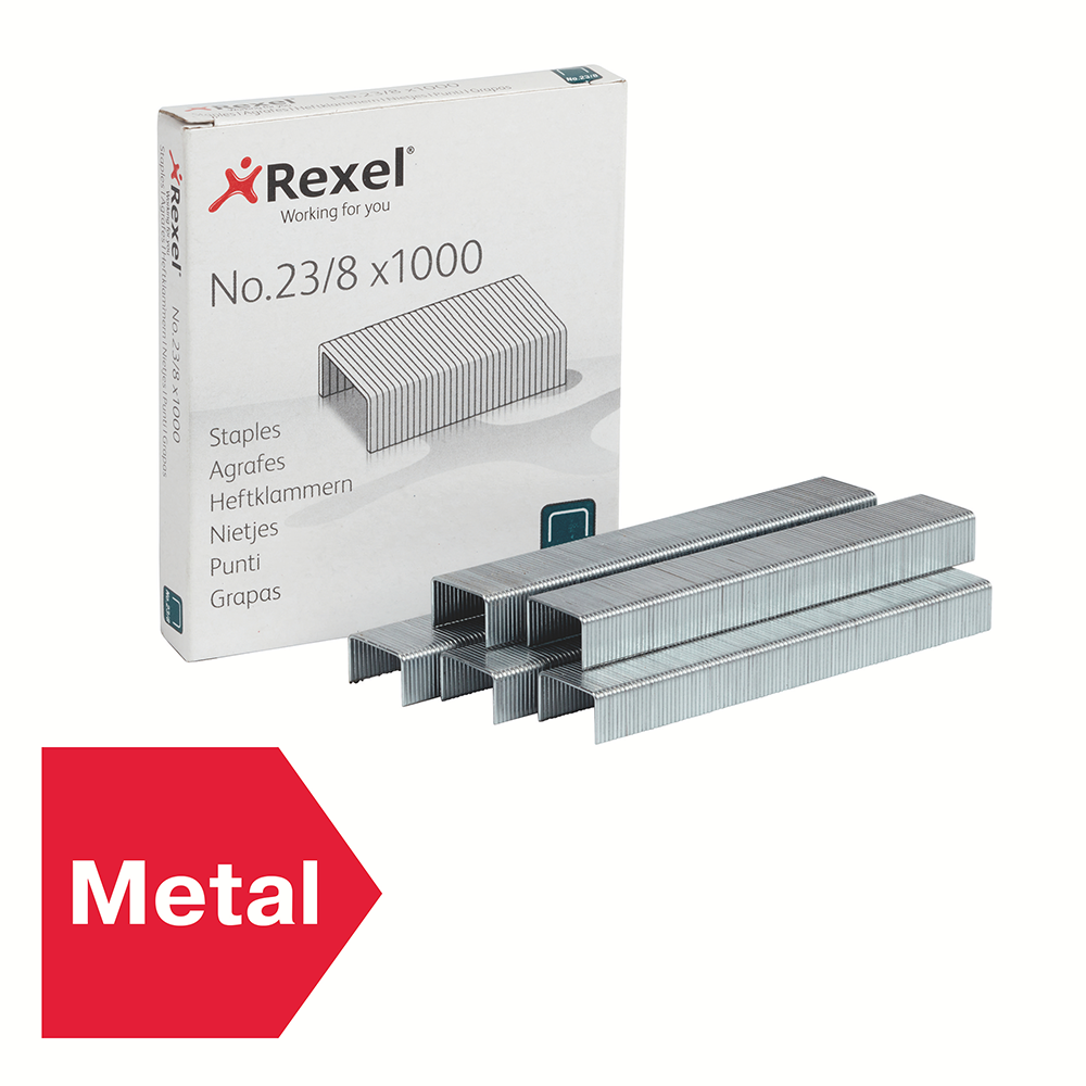 Organice sus documentos.Corchete de alambre acerado Nº23/8 mm de Rexel® ofrece un óptimo resultado de forma fácil y segura.