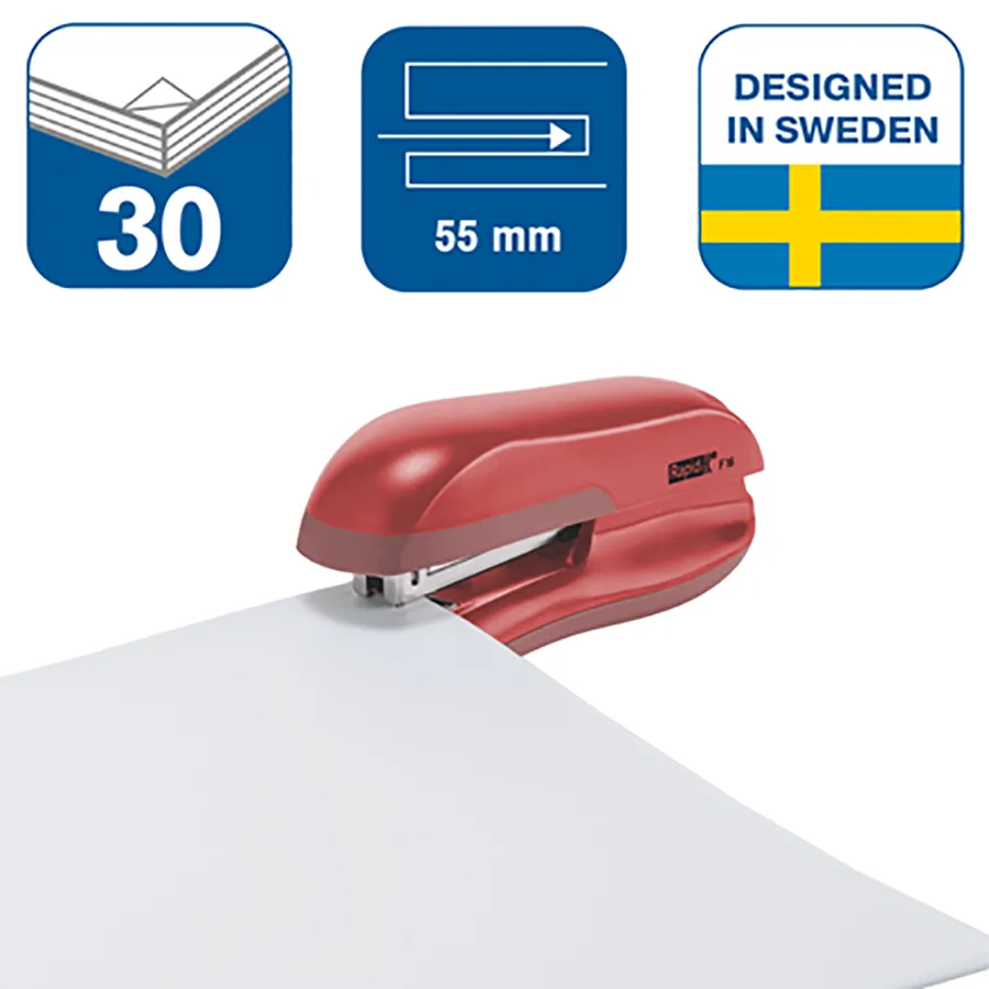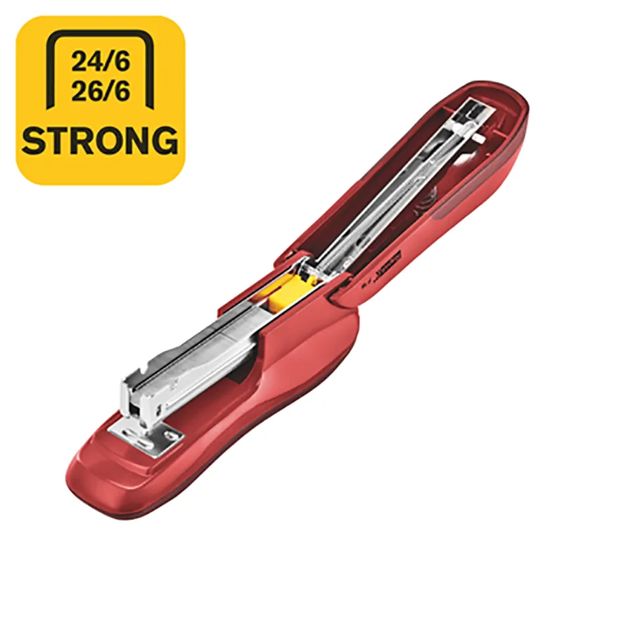 Corchetera con mecanismo de acero, plástico ABS de gran calidad y caucho TPE. Diseño moderno y ergonómico. Ideal para uso doméstico y de oficina.
