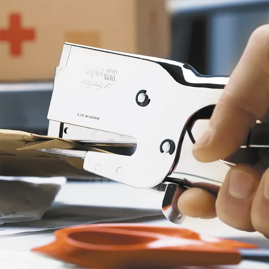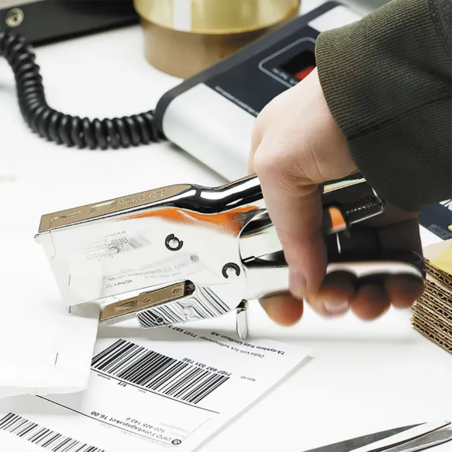 La Corchetera Rapid HD31 Metálica es una herramienta potente y resistente, ideal para trabajos exigentes en oficinas, tiendas, servicios de envío y uso doméstico. Fabricada en acero niquelado, cuenta con tope de parada en la base, carga posterior y un sistema versátil que funciona con dos yunques intercambiables mediante tornillos. Diseñada para engrapar hasta 70 hojas con corchetes Rapid 73/6-12, ofrece una profundidad de entrada de 65 mm. Perfecta para sobres acolchados, cajas pequeñas y paquetes, garantizando precisión y durabilidad. Incluye garantía de 5 años.