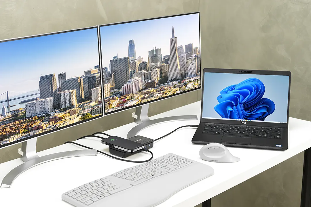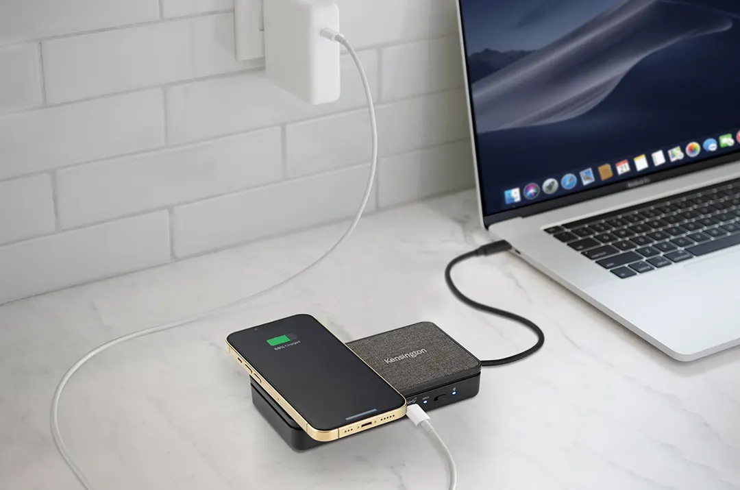 El Docking Station móvil USB-C SD1700P con dos salidas 4K y carga Qi de Kensington satisface todas estas necesidades de productividad, ahorro de espacio y compatibilidad universal con casi cualquier dispositivo USB-C.