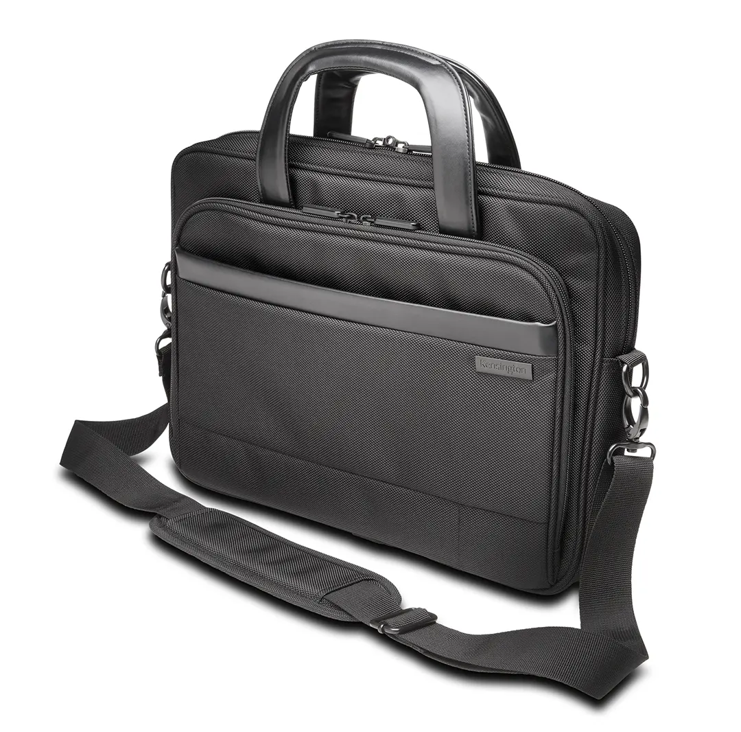 El MaletÃn Contour 2.0 Kensington es la opción ideal para profesionales en movimiento. Diseñado para notebooks de hasta 14″, cuenta con respaldo anatómico que disipa el calor y distribuye el peso cerca del centro de gravedad, ofreciendo máxima comodidad. Incluye compartimento acolchado con cierre bloqueable y resistente a perforaciones, protegiendo tu equipo contra robos. Además, su bolsillo RFID evita el escaneo malicioso de tarjetas y pasaportes. Con tirantes acolchados y bolsillos estratégicos, combina seguridad, ergonomÃa y estilo.