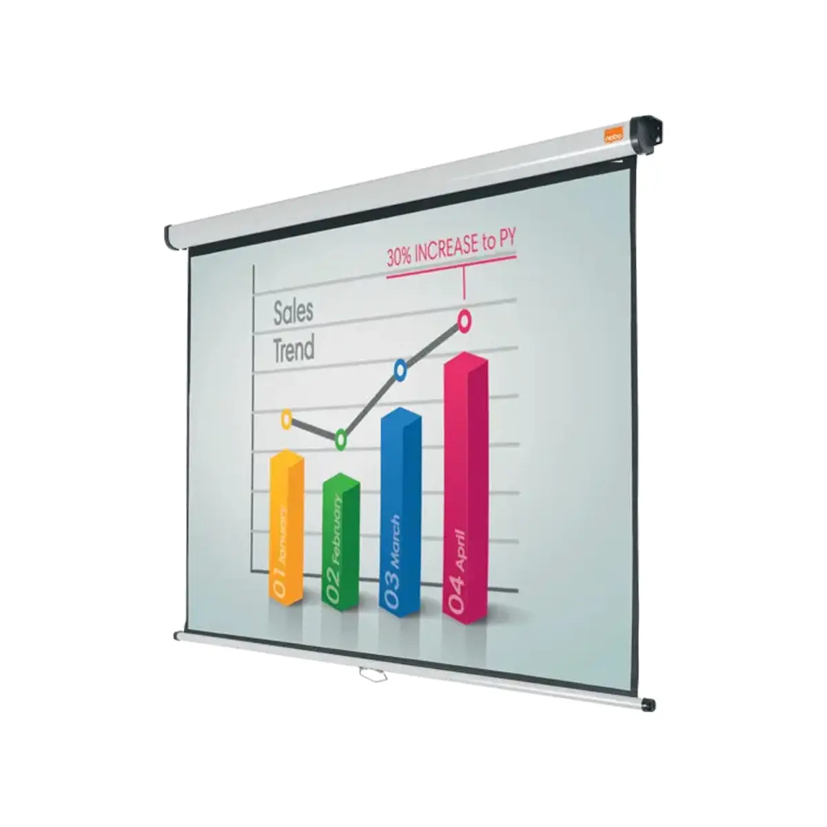 Mejora tus presentaciones y comunícate claramente con el Telón Mural 4:3 86” (175 x 132 cm) de NOBO. Este telón para proyectores posee una superficie blanca mate en la pantalla que reproduce imágenes con gran nitidez y detalle, visibles desde cualquier punto. Además, puede enrollarse fácilmente dentro del armazón cuando no se utiliza o como medida de protección. Con los brazos extensibles opcionales el telón puede montarse sobre una pizarra blanca o inclinarse hacia el público.