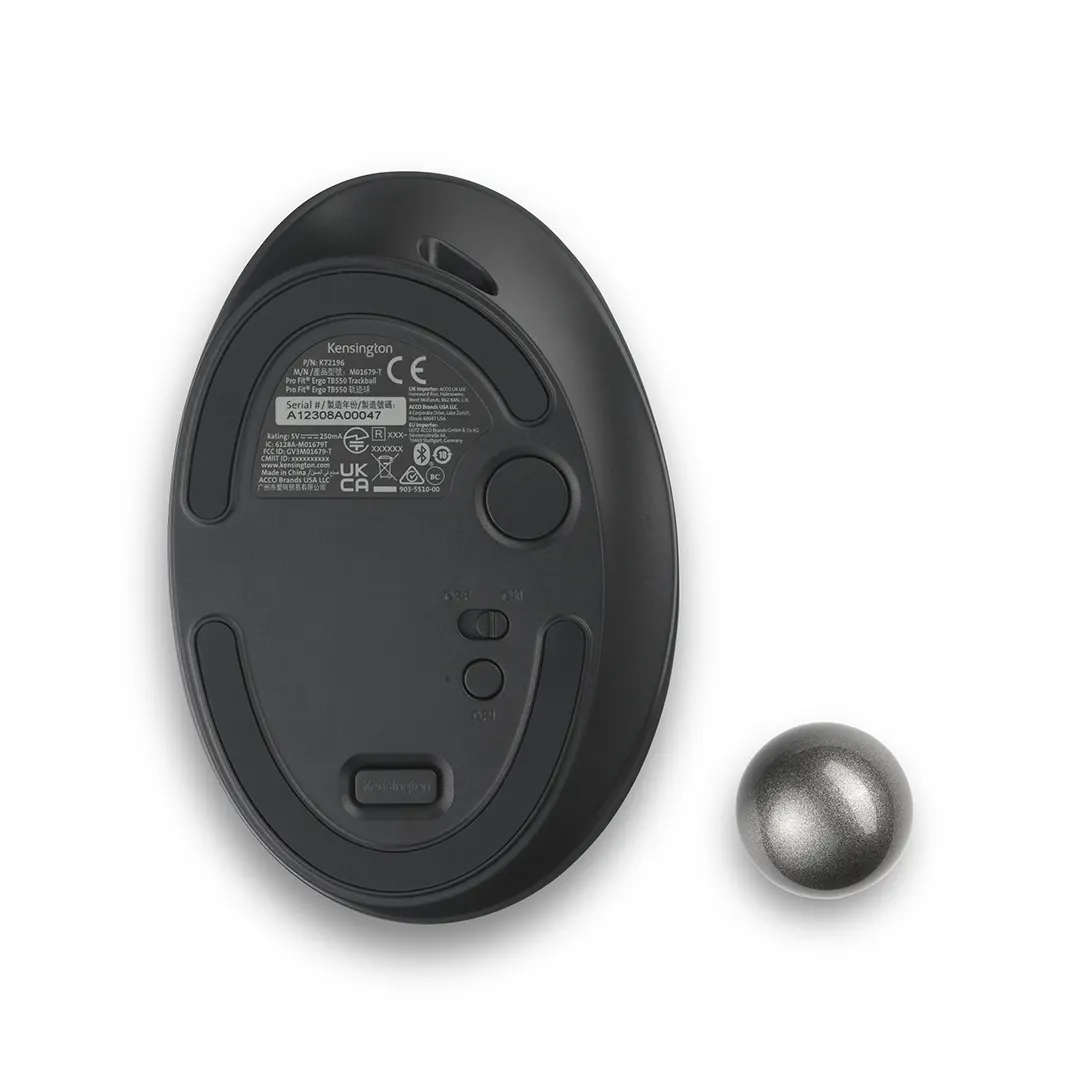 • Sistema patentado de limpieza: El diseño único y fácil de limpiar del trackball Pro Fit® Ergo TB550 cuenta con un botón de expulsión para poder quitar fácilmente la bola del trackball para su limpieza.