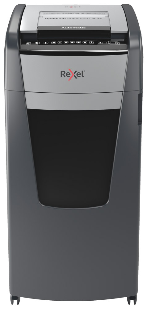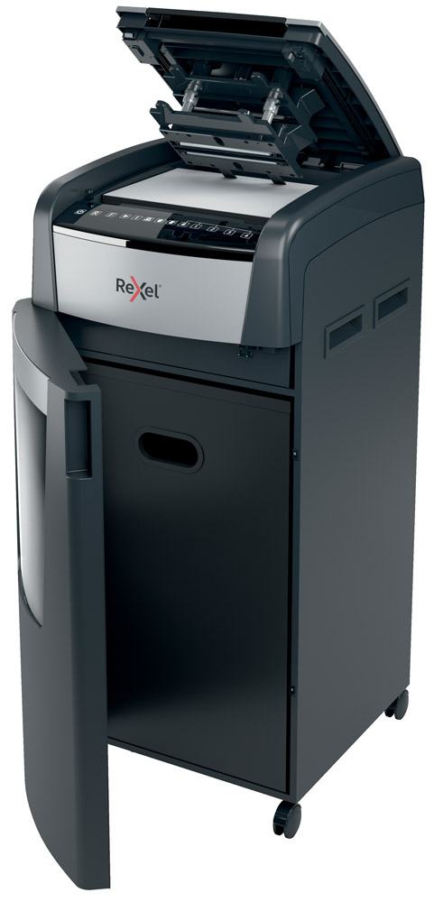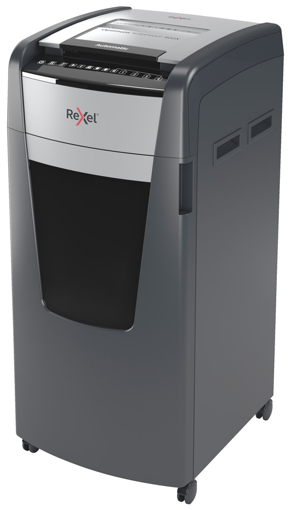 La destructora de corte en partículas Optimum AutoFeed 600X tritura automáticamente hasta 600 hojas de papel A4 (80 grs.) a la vez, en partículas P-4 (4×36 mm). Esta destructora de alimentación automática es una trituradora de oficina sofisticada, con una papelera extraíble de 110 litros. No es necesario alimentar manualmente el papel, ni quitar grapas y clips de papel primero, esta destructora de papel automática hará todo el trabajo por ti.