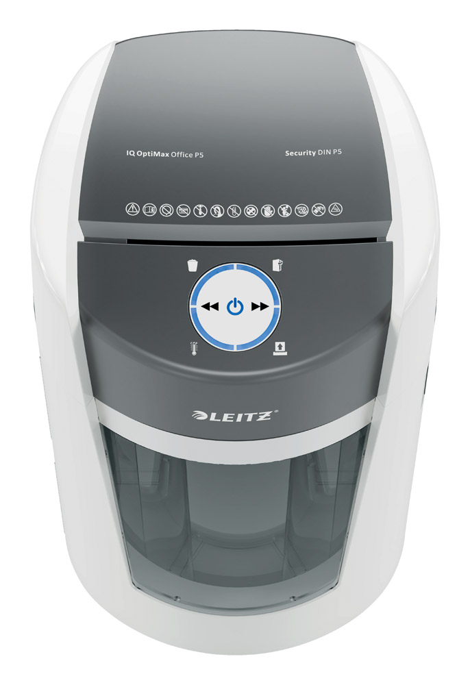 La destructora de documentos Leitz IQ OptiMax Office ofrece una solución de destrucción innovadora y elegante, al tiempo que garantiza una seguridad y tranquilidad excepcionales. Esta destructora de papel DIN P5 de alta seguridad tritura sin esfuerzo hasta 10 hojas A4 a la vez en microcortes. La IQ OptiMax incorpora la exclusiva tecnología de giro de papelera (BRT), que maximiza la capacidad en un +33%*. La papelera giratoria garantiza una distribución plana y uniforme del papel para evitar que los trozos de papel formen un pico en la papelera, lo que permite triturar 140 hojas A4 adicionales antes de tener que vaciarla. BRT significa que no hay necesidad de sacar o agitar la papelera; el indicador de “papelera llena” solo se activa cuando alcanza el 100% de su capacidad. La generosa papelera de 35 litros tiene capacidad para 550 hojas A4 y se ilumina en azul durante su uso para ofrecer la mejor experiencia de destrucción. La intuitiva pantalla LED giratoria incluye indicaciones de advertencia en rojo para diversos estados, como papelera llena y puerta abierta. La Leitz IQ OptiMax es versátil para cualquier entorno de trabajo gracias a su funcionamiento ultrasilencioso, su diseño elegante y su impresionante durabilidad. Autonomía continua de 120 minutos. Color blanco. *La Leitz IQ OptiMax probada con y sin tecnología de giro de papelera.