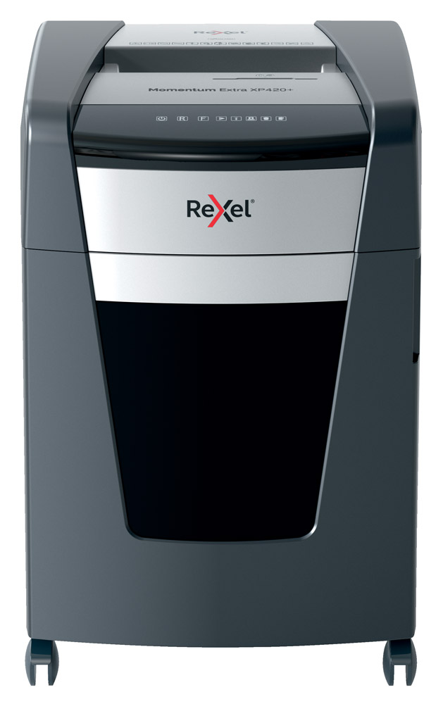 Las destructoras de papel sin atascos Rexel Momentum Extra son ideales para destruir documentos confidenciales en la oficina.