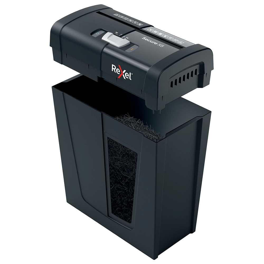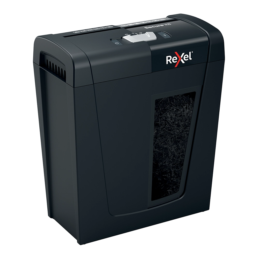 La máquina destructora Secure X8 destruye hasta 8 hojas de papel A4 (80 grs) de una sola vez a través de la ranura de alimentación manual en partículas de nivel de seguridad P-4 (4×40 mm). Esta pequeña destructora de corte en partículas es perfecta para usar como destructora doméstica en una oficina en casa, o también es una destructora de oficina personal ideal que se adapta cómodamente debajo de un escritorio debido a su tamaño compacto y adecuado.