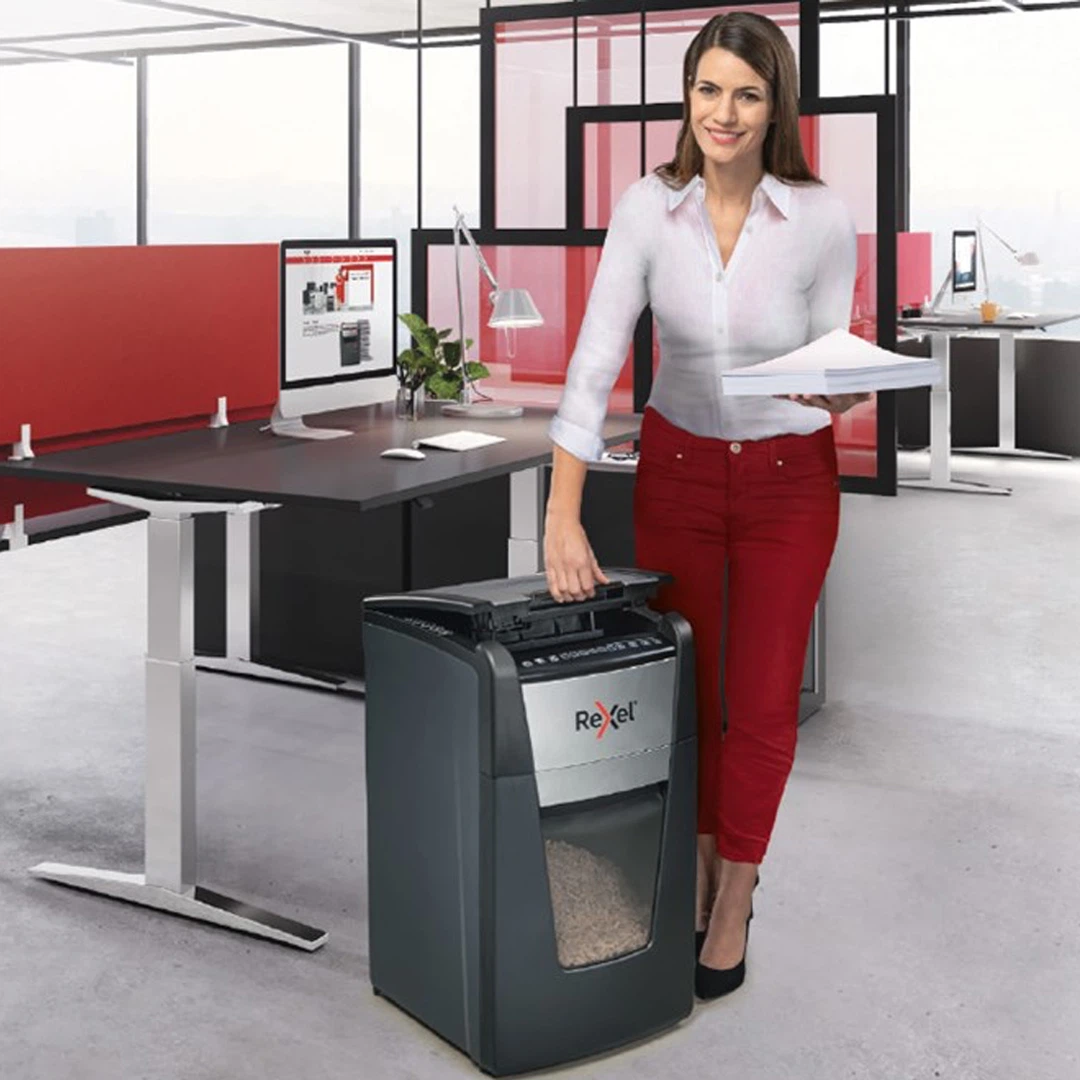 La visión de Rexel es que todos los trabajadores de oficina puedan trabajar con confianza y productividad con herramientas distintivas, como nuestras Trituradoras de Papel, que son la elección inteligente para la tarea.